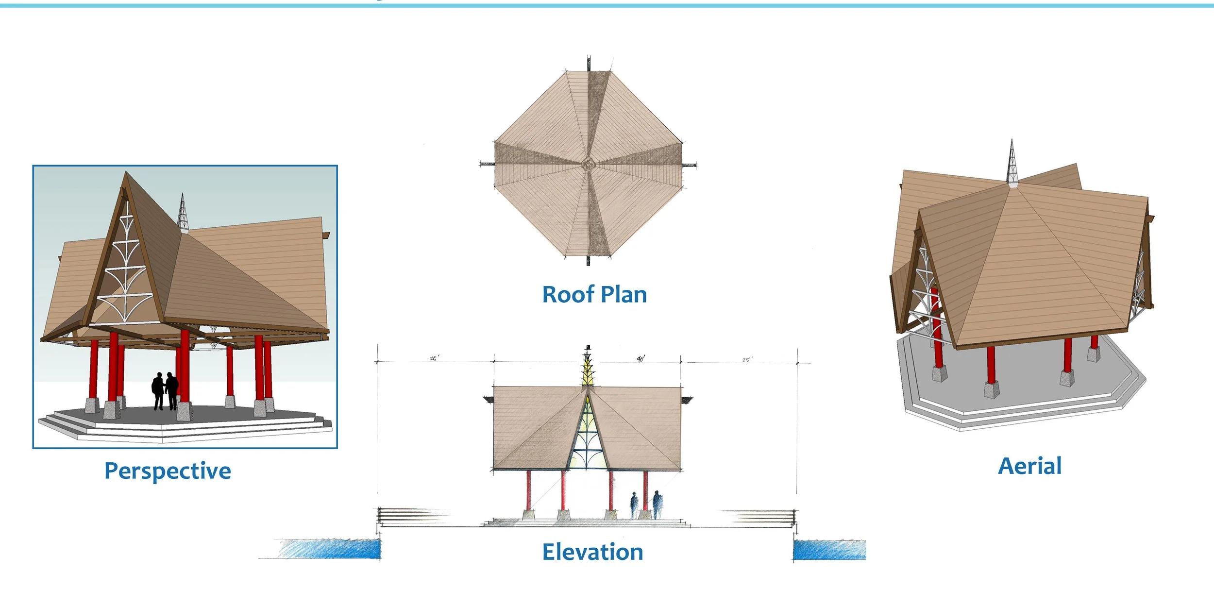 The new marina provides secure docking and/or mooring space a number of small boats, a promenade for sitting and walking, an open pavilion under which to picnic or enjoy the view. The historic Boat House was restored as a community and boating related facility. The drawing below is of one of the alternative designs developed by Mark Leese, while with a previous firm, for the pavilion at the end of the jetty.